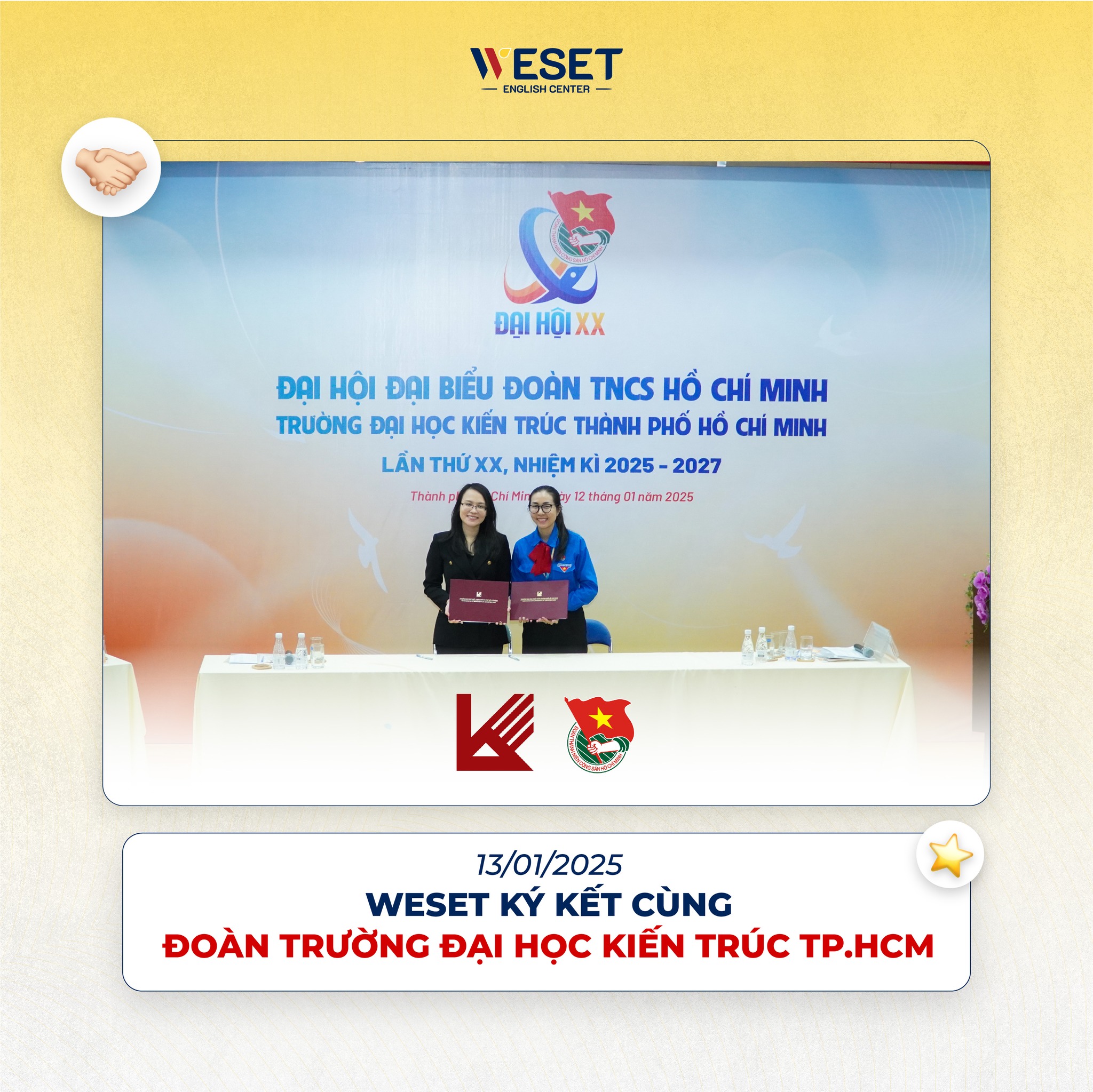 WESET chính thức trở thành đối tác phối hợp cùng Đoàn TNCS Hồ Chí Minh Trường Đại học Kiến trúc TP.HCM nhằm nâng cao kỹ năng tiếng Anh cho sinh viên.