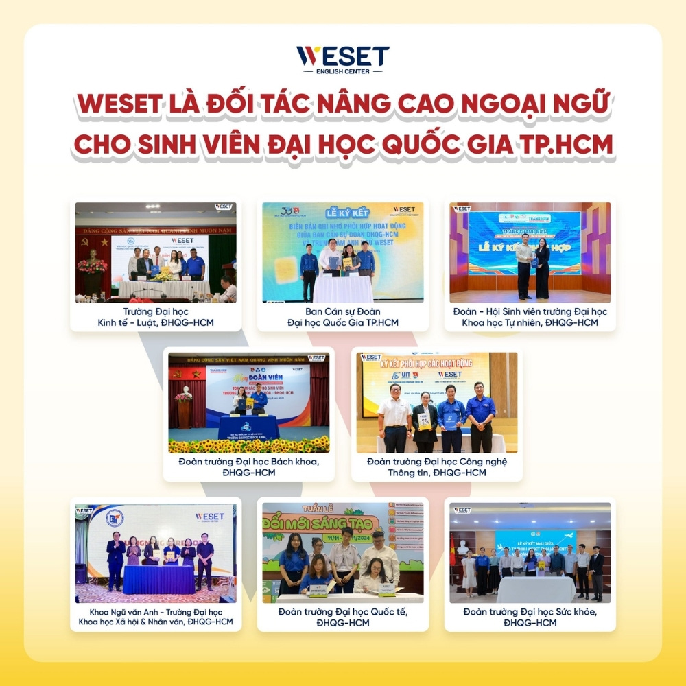 WESET tự hào là đơn vị hợp tác cùng Đại học Quốc gia TPHCM trong nhiều hoạt động, chương trình ý nghãi cho sinh viên.